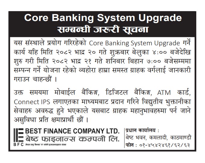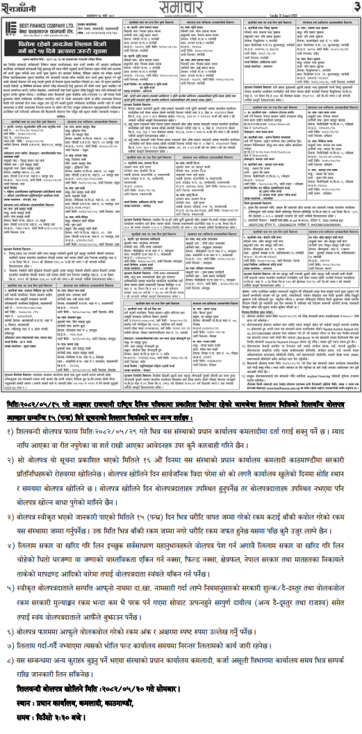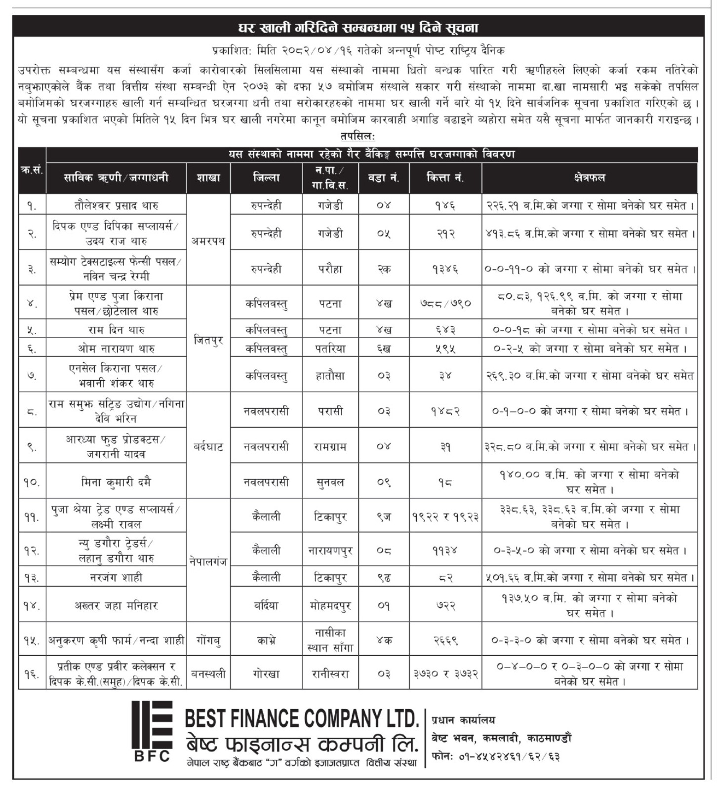 धितोमा रहेको जायजेथा लिलाम बिक्री गर्नेबारे १५ दिने अत्यन्त जरुरी सूचना (राजधानी राष्ट्रिय दैनिकमा प्रकाशित)