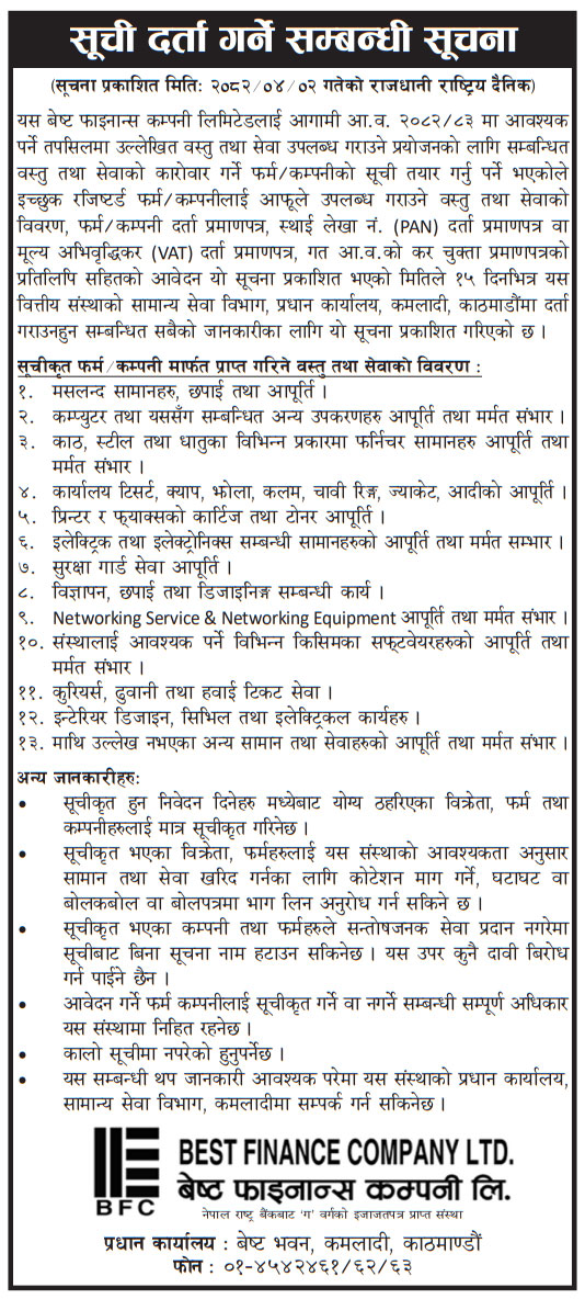 सूची दर्ता गर्ने सम्बन्धी सूचना