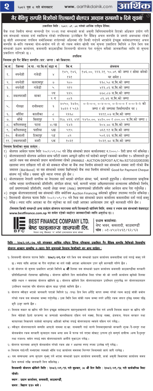 बैंकिङ / गैर बैंकिङ सम्पत्ति बिक्रीको सिलबन्दी बोलपत्र आह्वान सम्बन्धी ७ दिने सूचना