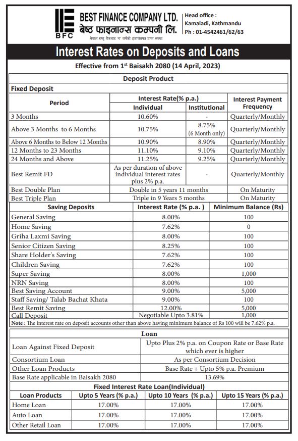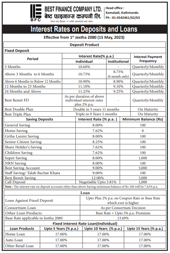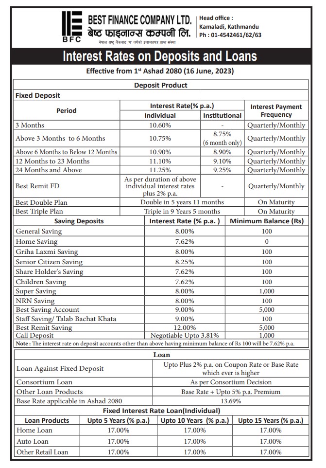 INTEREST RATE EFFECTIVE FROM 2080 BHADRA 1