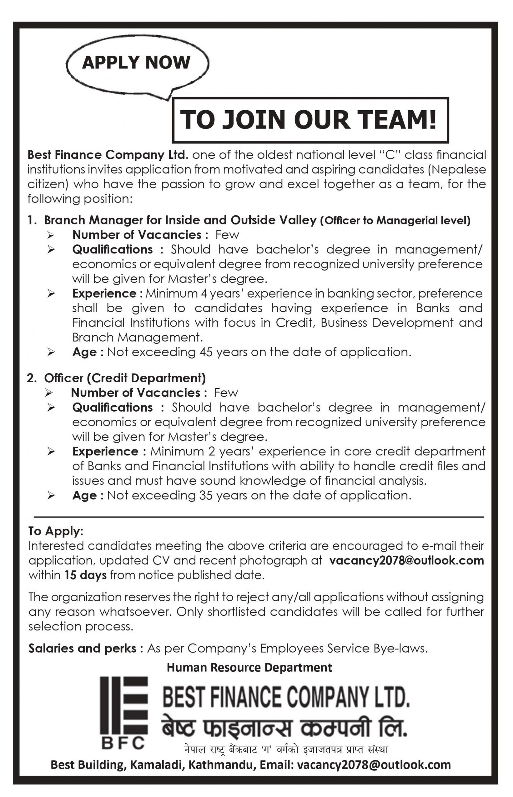 Vacancy Announcement !