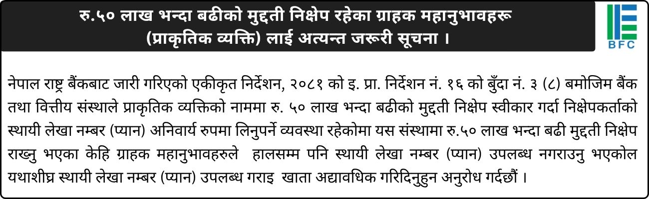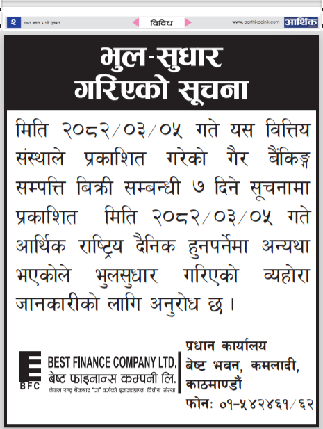 २०८२/०३/०५ गते प्रकाशित गरेको गैर बैंकिङ्ग सम्पत्ति बिक्री सम्बन्धी ७ दिने सूचनामा सच्याइएको सम्बन्धी